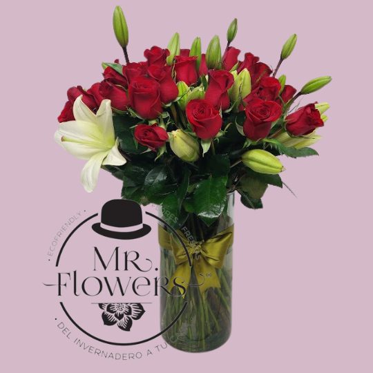 Arreglo Floral con Rosas y Lilis