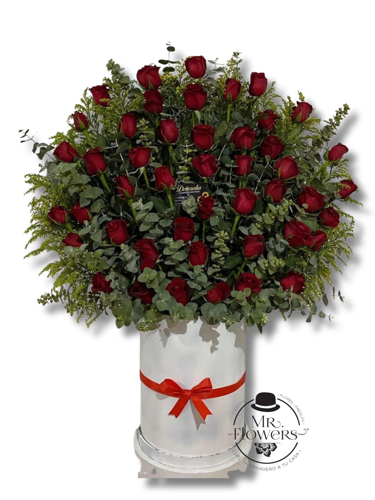 Arreglo Floral de 50 rosas rojas incluye: