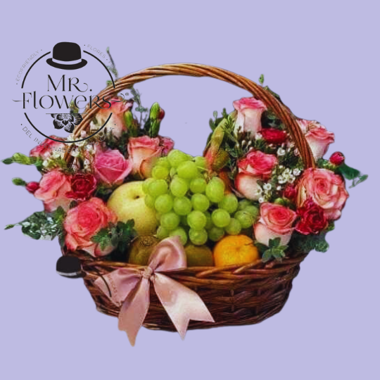 Canasta Frutal con Rosas y Claveles a Domicilio